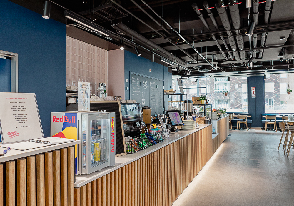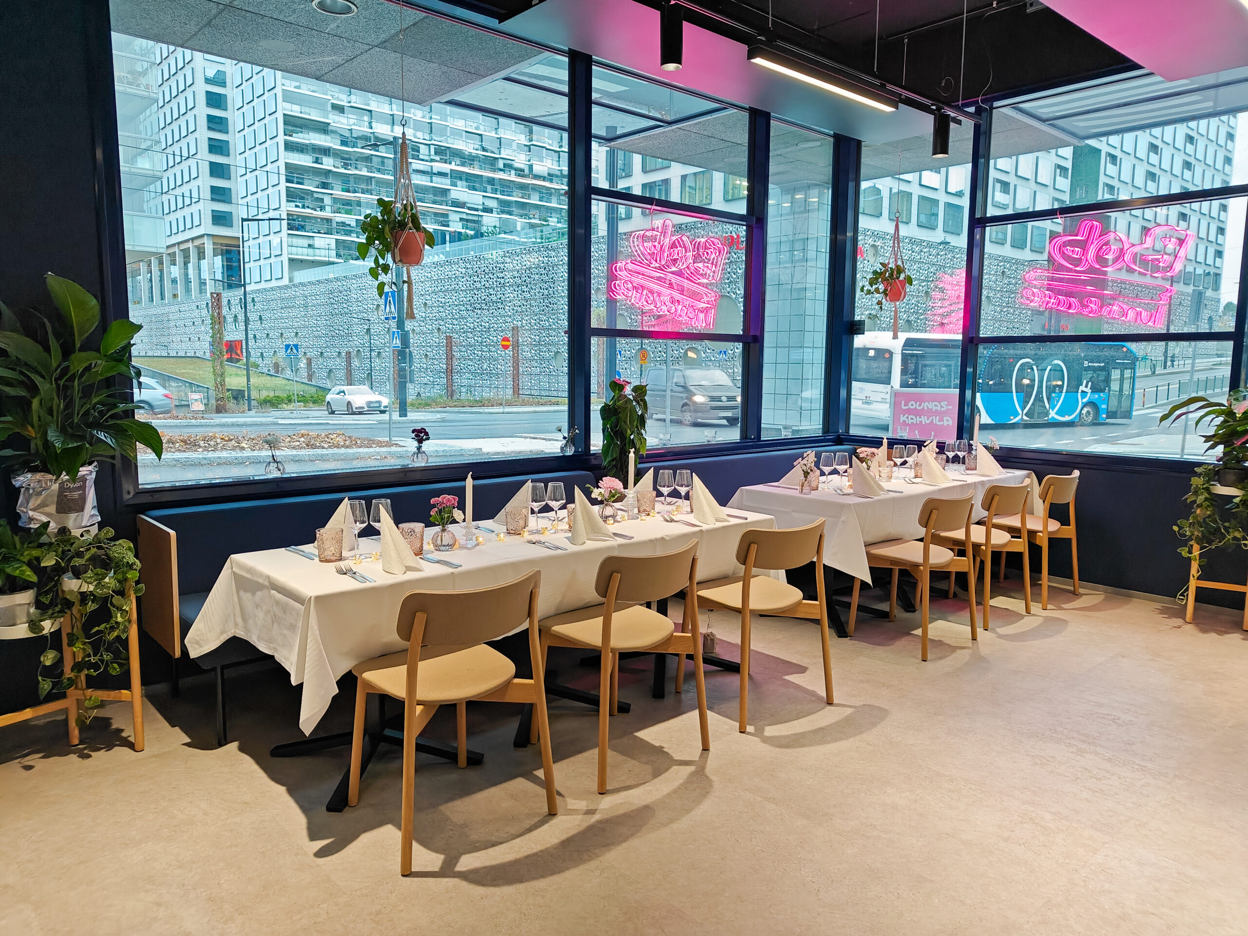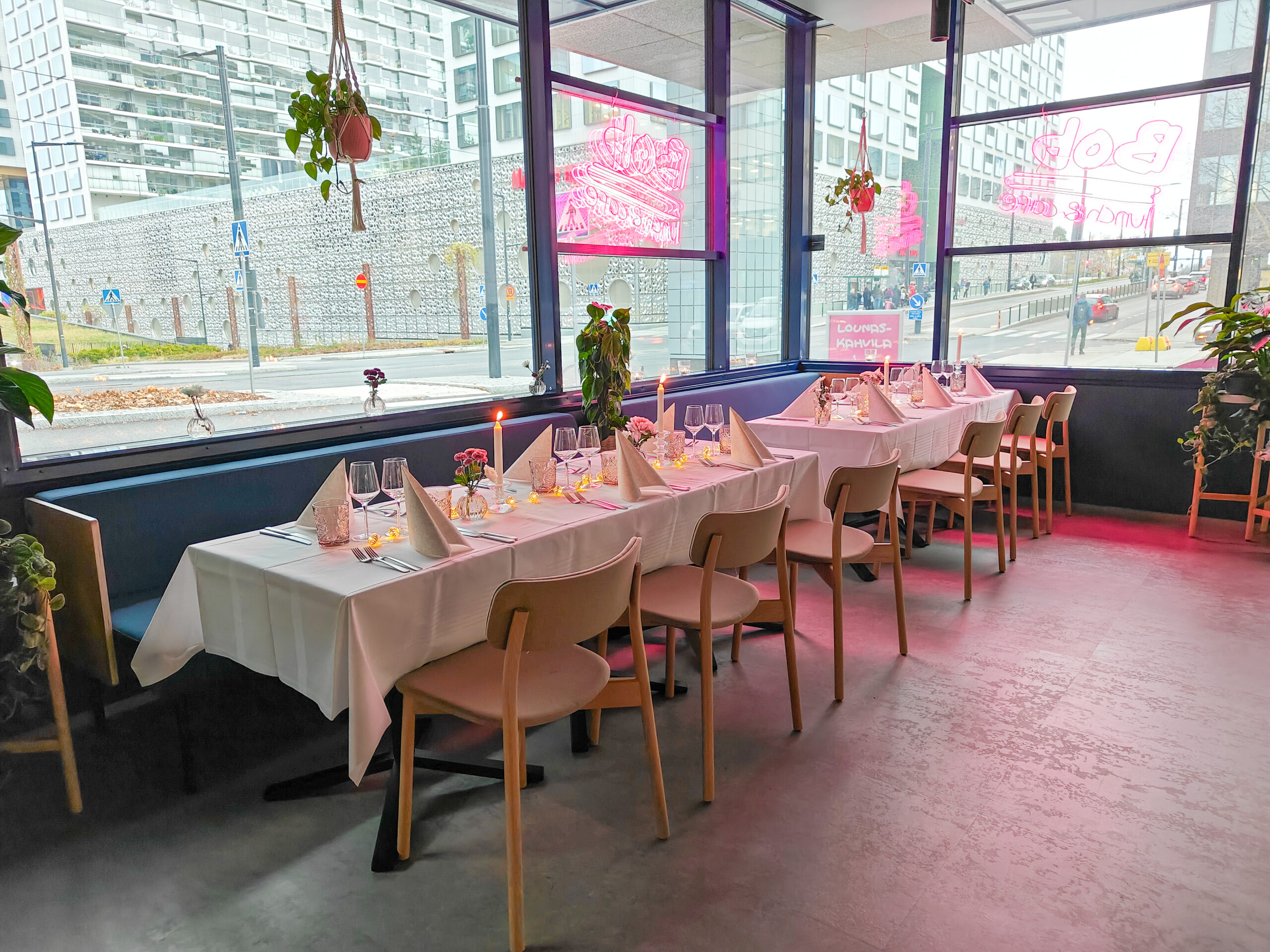 Bob is located in Pasila with excellent transport connections. The venue is right next to Pasila Station and the Tripla shopping center, making it easy to reach by public transport—and convenient for after-parties as well. The space offers 50 seats, and can comfortably accommodate up to 70 people standing.