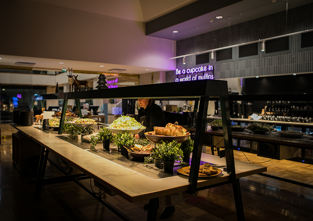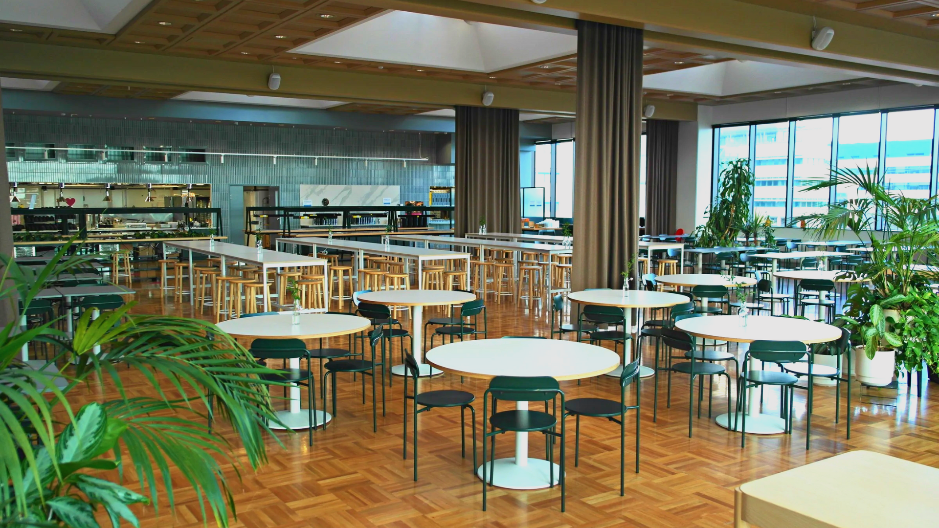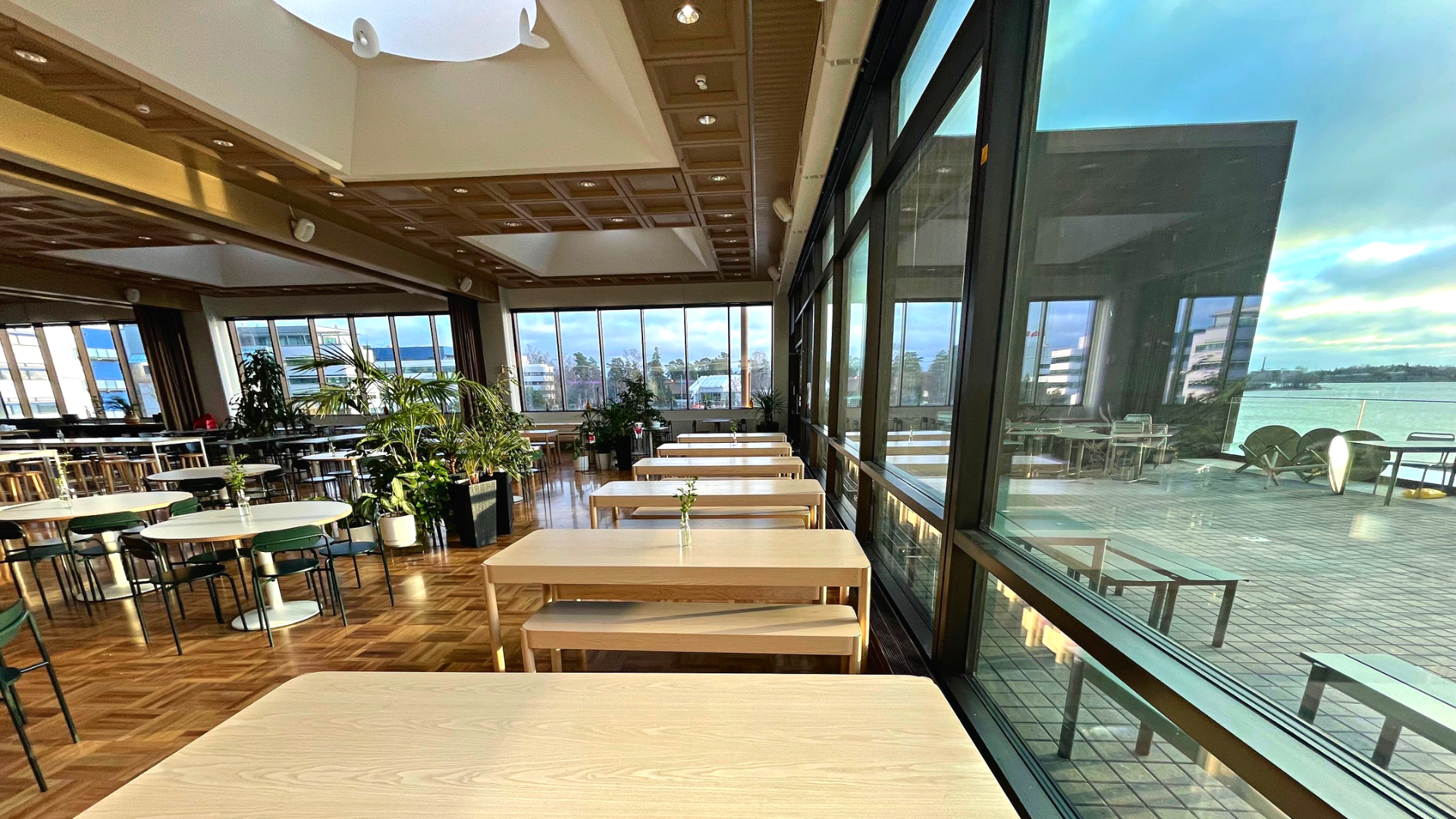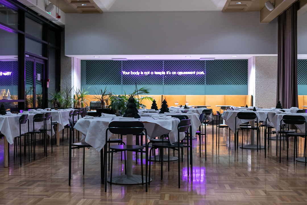 The restaurant’s interior respects the spirit of the 1970s building, with light wood, fresh green tones, and stylish marble. On weekdays, the venue serves as a lunch restaurant, but it can be booked flexibly for morning and evening events. On weekends, the space can be reserved freely for all kinds of occasions.