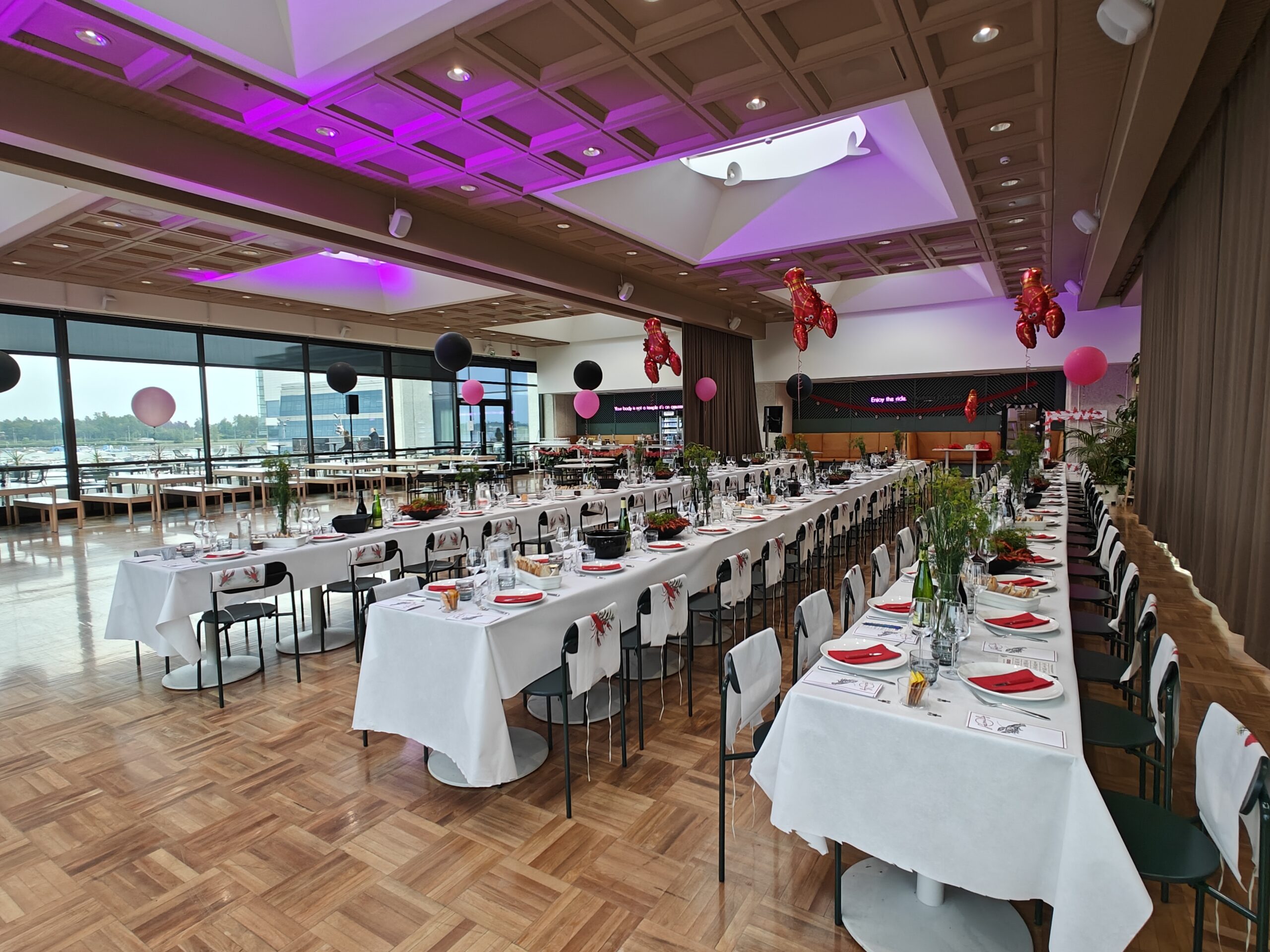 Dylan & Friends’ versatile spaces provide an unforgettable setting for many private events! The restaurant can be divided into sections of various sizes with partition curtains, allowing the space to adapt for events from 20 to 300 guests. Large windows in the hall offer unique sea views, and during the summer season, guests can also enjoy a large terrace right by the water.