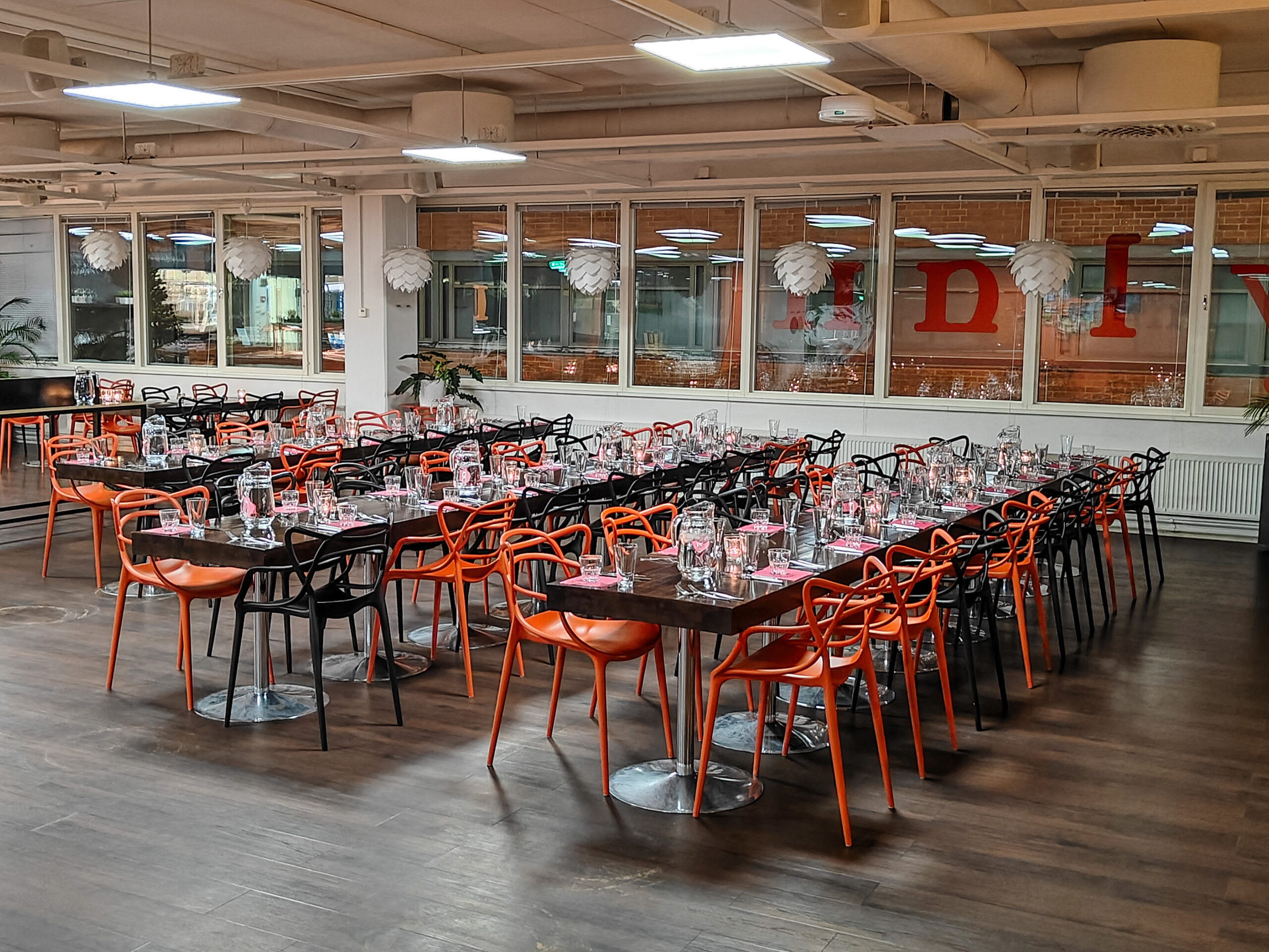 Our restaurant is equipped with a sound system. We’re happy to help with planning and organizing the program, and we can also arrange decorations and other event production services.