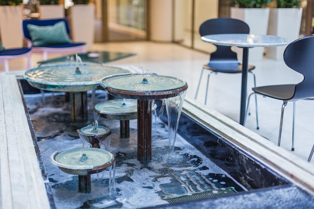 Tilasta huokuu edelleen sen alkuperäinen arvokkuus ja pelkistetty tyylikkyys. Klassiset naurisvalaisimet notkuvat lähes 70 vuotiaiden tammipöytien päällä, joiden äärellä voit hengähtää ja nauttia lasillisen kuohuvaa. Krumeluurilla klassikkodesignilla koristellut puitteet saavat vastapainoa tilaa reunustavista karkeanrouheista travertiiniseinistä, joita koristaa vehmaat viherkasviköynnökset. Atriumin kattoikkunoista tulviva luonnonvalo ja kauniisti liplattava suihkulähde luovat uniikkia tunnelmaa, jollaista et muualta löydä.